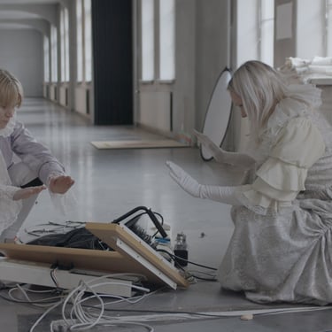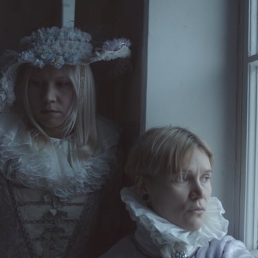 Dissortion is a poetic depiction of longing on the obscure border of real and delusion. Two bodies detached from a Baroque painting seek touch - they cling to each other, wandering timeless rooms that localize in mind rather than matter. Desire and violence, genders and epochs mix into a fragmented love story.